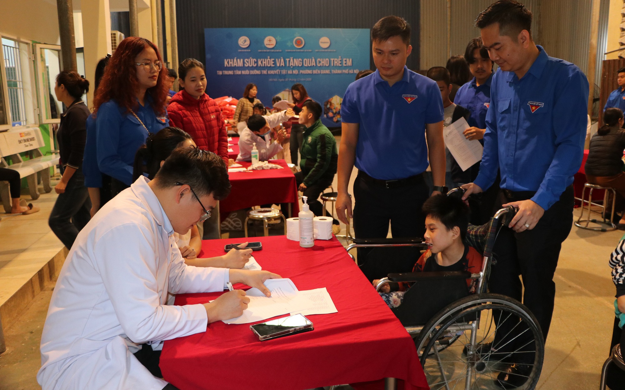 Đội ngũ y, bác sĩ của Bệnh viện Nhi Hà Nội thăm khám cho trẻ khuyết tật